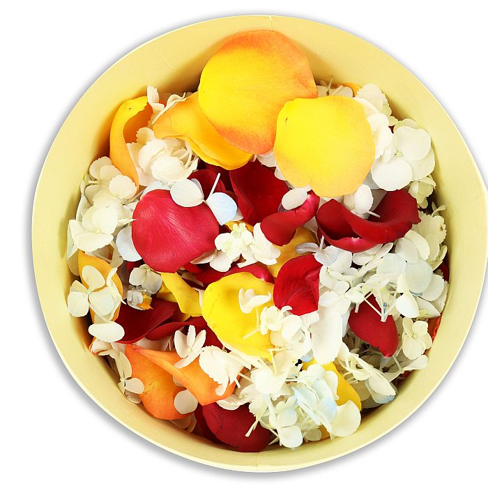 - Elegant mix of Hydrangea, Rose, and Chrysanthemum petals
